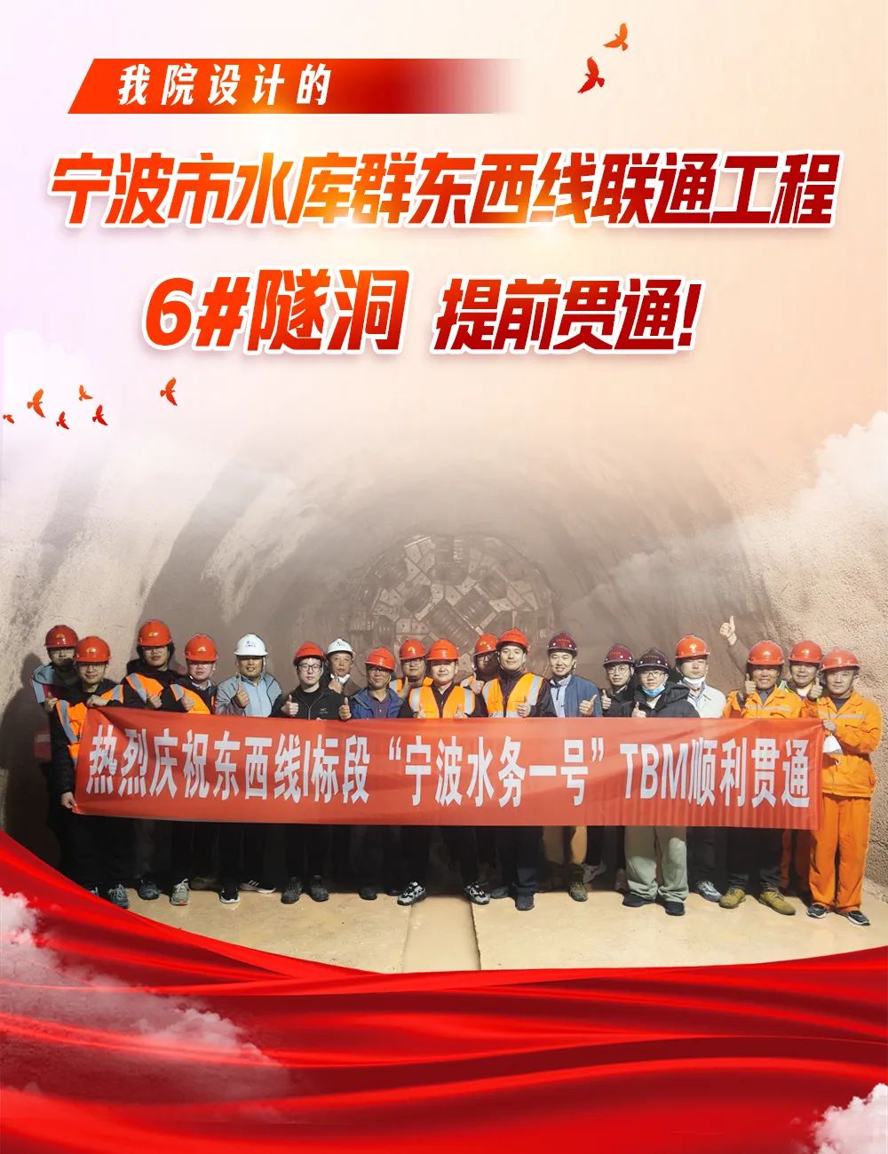 我院設計的寧波市水庫群東西線(xiàn)聯(lián)通工程6#隧洞提前貫通!