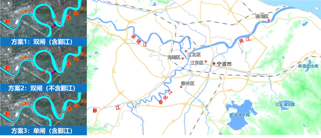 殺雞灣建閘課題的提出:從防洪角度,按照“大小洪水分道走” 的思路,在殺雞灣河段設置干流節制閘,以調控奉化江洪水。