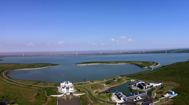 工程占地1萬(wàn)畝,總庫容4508萬(wàn)方,調蓄庫容3500萬(wàn)方,屬中型水庫。其工程等別為Ⅲ等,主要建筑物級別為3級,洪水標準按50年一遇設計,300年一遇校核。工程主要建設內容包括水庫堤壩長(cháng)10929米,泵站1座(裝機容量800kw),放水閘1座,節制閘3座,排咸工程,同時(shí)建設湖心島、配套引水河道、橋梁、管理用房和綠化工程等。